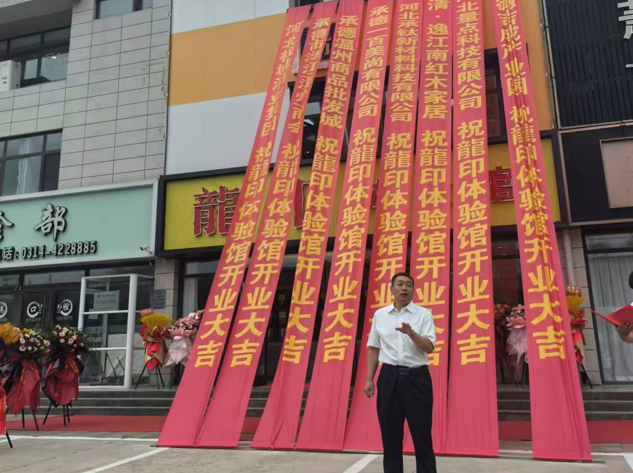 活動(dòng)現(xiàn)場(chǎng),由承德市雙灤區(qū)龍印體驗(yàn)館負(fù)責(zé)人易會(huì)讓,承德市雙灤區(qū)工商聯(lián)主席馬義兵,板城酒業(yè)黨委書(shū)記、總經(jīng)理張春生,承德市浙江溫州商會(huì)執(zhí)行會(huì)長(zhǎng)徐永財(cái)一同為開(kāi)業(yè)剪彩,體驗(yàn)店的開(kāi)業(yè)必將推動(dòng)“龍印”品牌更加蓬勃發(fā)展!
