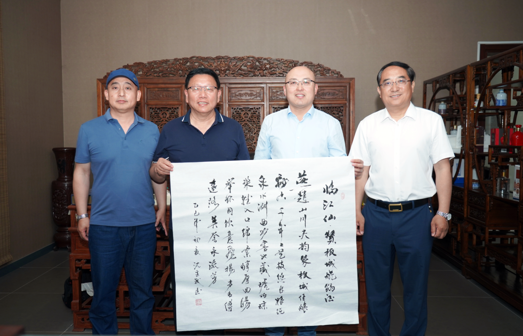 訪問(wèn)期間,沈重武副會(huì)長(zhǎng)現(xiàn)場(chǎng)揮毫潑墨,向板城酒業(yè)贈(zèng)送書(shū)畫(huà)作品《臨江仙·贊板城燒鍋酒》,表達(dá)了其對(duì)板城酒業(yè)三百多年不間斷傳承的國(guó)家級(jí)非物質(zhì)文化遺產(chǎn)老五甑釀造技藝與“一店燒鍋兩朝御賜,乾隆妙對(duì)嘉慶天章”深厚歷史的稱贊。